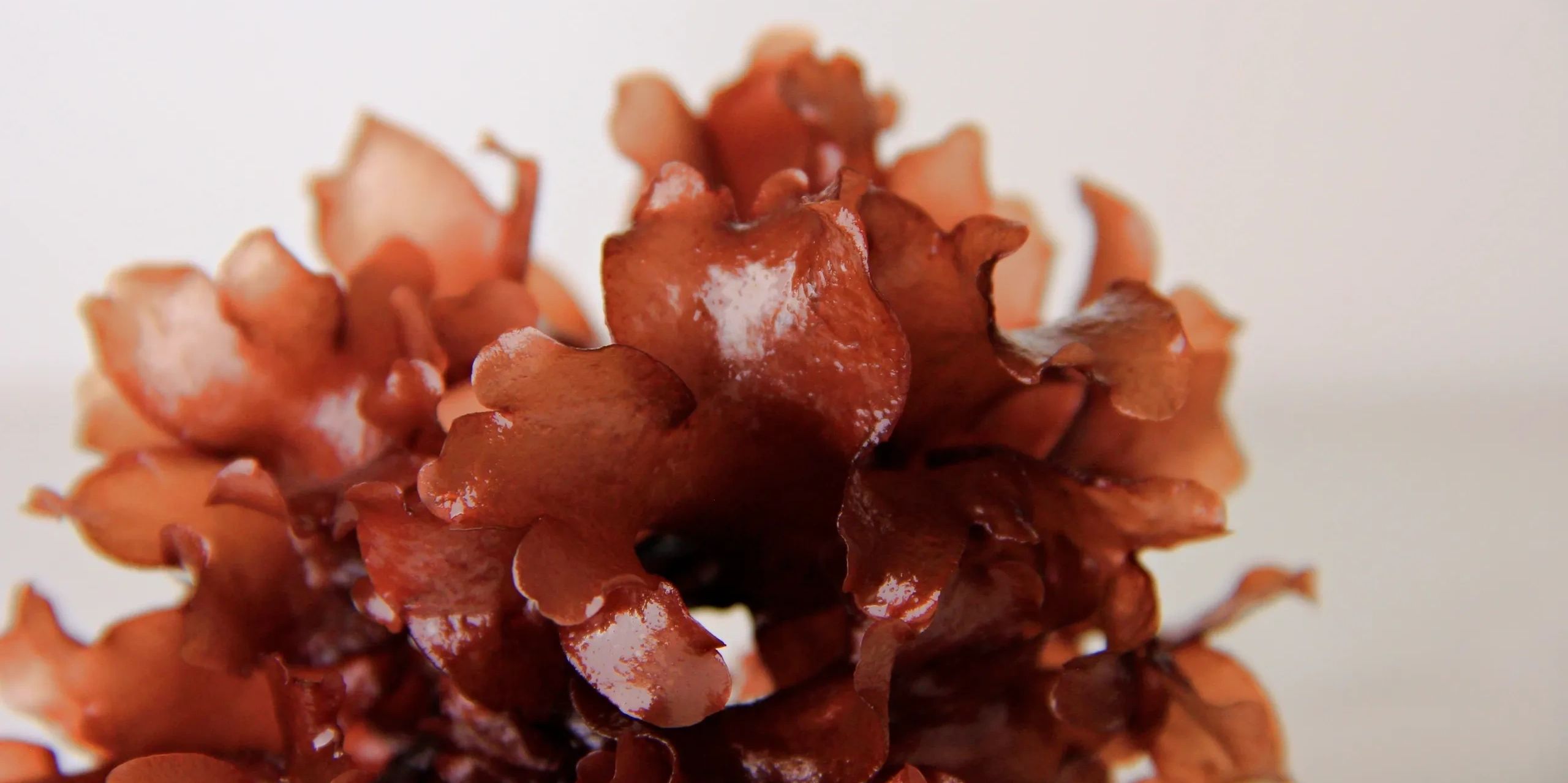 Palmaria palmata is a red seaweed and known as 'Dulse'. It's a great tasting seaweed and referred to as vegan bacon, It's salty, smoky, nutty flavor, with a rich umami taste. Palmaria palmata has a dark red to purple color and is used in cosmetics, dietary supplements and is a great and healthy snack for pets.